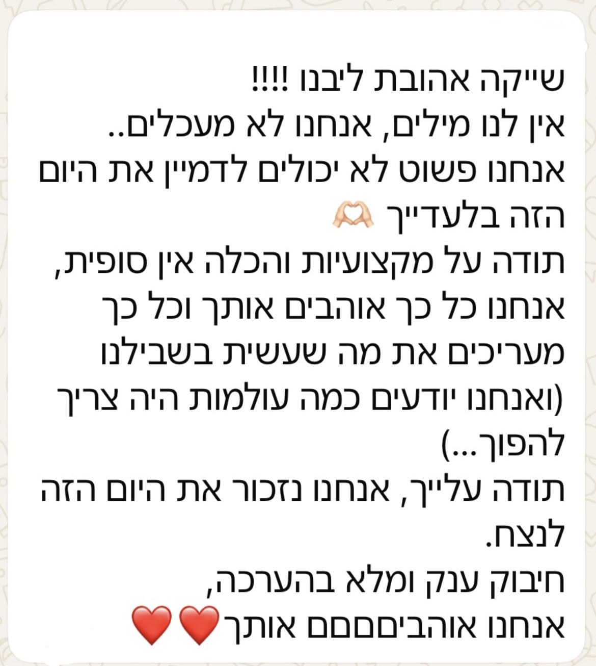 בוודאי. אני מקיימת שיחות מקוונות או פרונטליות (בהתאם לאירוע) וזה המקום לדבר בדיוק על זה.
